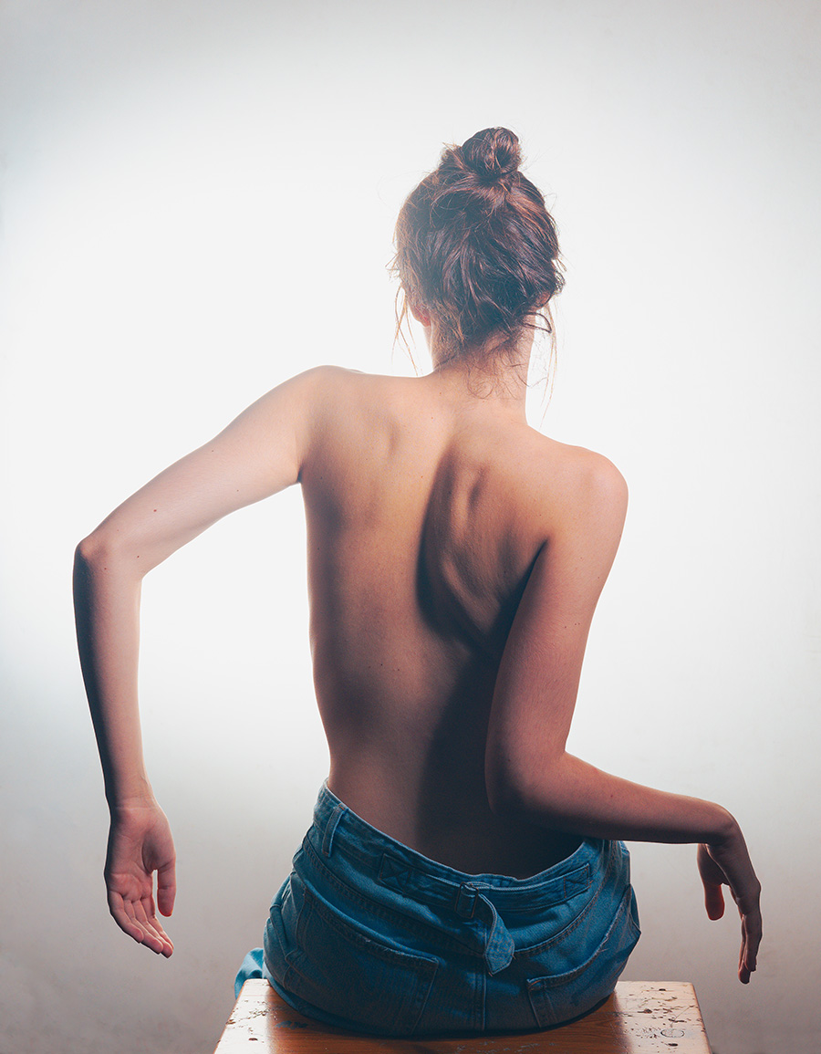 Sesiones desarrolladas en los platós de la Facultad de Bellas Artes. La altura de los techos y la amplitud del espacio son claves para la gestión de las sombras y el volumen en los retratos que se hacen. Estos entornos permiten una libertad de movimiento y una profundidad de campo que refuerza la limpieza visual característica del trabajo en estudio y ayudan a trabajar con una luz controlada.